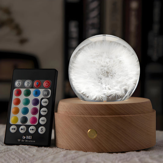 Glowing Dandelion Musical Night Lamp with Rotating Wooden Base